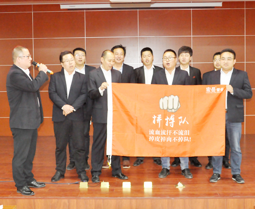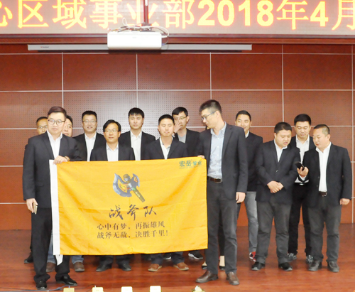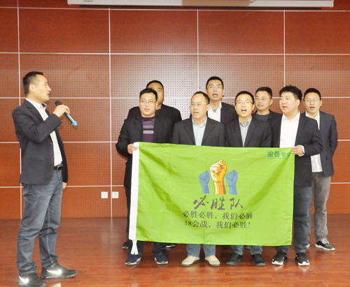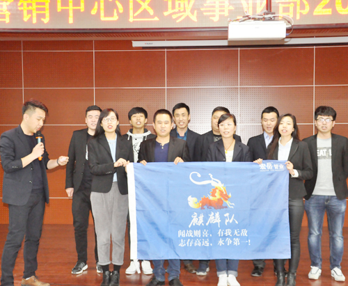 4月3日,华体会hth集团营销誓师大会在营销中心热血开展! 全员参与,激情动员,华体会hth销售精英们组成十个战队,并确立自己的队长、队名、队旗、队标及队呼。在大会上各战队“亮队型、展风彩、表决心”,队员们慷慨激昂的表态发言,点燃了营销人员的满腔热情。