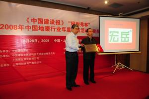 4月28日下午,《中国建设报》主办的2008年中国地暖行业年度盘点活动颁奖典礼在上海光大中心酒店隆重举行,秦皇岛华体会hth管业当选“2008年中国地暖行业PE-Xa管材领军品牌”,沉甸甸的牌匾由中国建筑金属结构协会地面供暖委员会华明九主任亲手授予华体会hth公司总经理助理王明科。本次盘点活动中张思良副总经理获得2008年度地暖行业十大风云人物提名。