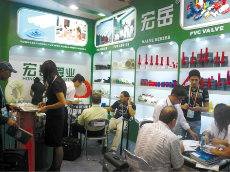 在本届广交会期间,来自欧洲、南美、北美、中东、非洲、东南亚等世界各地的众多客商站在华体会hth的展位前,拿起精致的华体会hthMacroAlp系列PPR管材管件,询问不停;更多的客户对华体会hth齐全的PPR、PVC球阀系列产品包括八角球阀、内螺纹球阀、铜芯球阀、组装阀、蝶阀等纷纷带走样品,购买意向非常明确,另外许多用户在5天展期内在货比多家后,多次来到展位前洽谈购买细节,最终签订合作协议,不但证明了华体会hth产品的优秀品质得到了客户和市场的检验,同时极大的鼓舞了外贸部所有人员的工作激情和斗志。