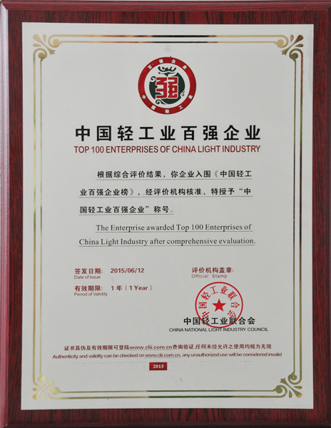 华体会hth入选中国轻工业百强企业