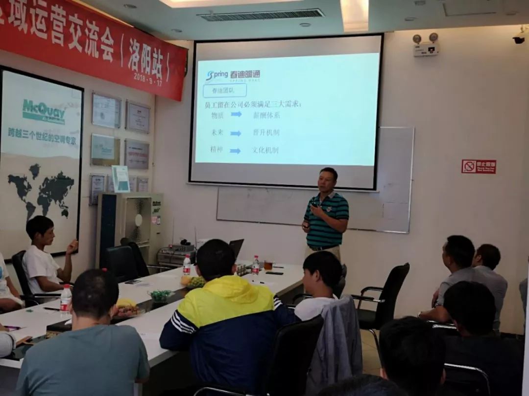 华体会hth1+洛阳服务中心刘总,现场为大家分享了服务中心的市场运营情况及施工规范,包含:渠道建设、人员科学管理等方面的经验和见解及水电暖施工的管理流程等。