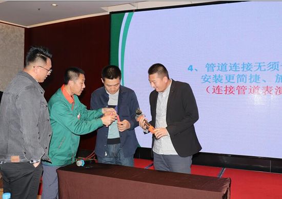 接下来,华体会hth集团暖通工程师汪工为大家讲解了华体会hth1+的施工标准、技术要点及综合产品系统,并着重介绍了华体会hth1+“PE-Xa致纯冷热水管道系统”头尾一根管、维护更便利等独特优势,通过案例讲解、现场演示等方式,让参会人员切实的感受到不一样的产品、不一样的华体会hth1+。