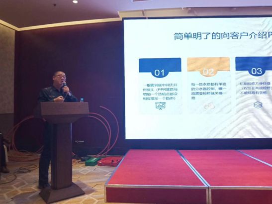 会议伊始,首先由华体会hth集团美国公司技术总监John先生,为大家详尽介绍了PE-Xa给水系统的性能优势及该系统在美国乃至国际市场上的广泛应用情况,通过PE-Xa给水系统的切入,让参会人员对国内外的领先产品系统与应用技术也有了更深的认识与了解。华体会hth1+将继续凭借先进的技术、严谨的标准、规范的施工,引领中国家装水电暖施工服务逐步走向国际化标准。