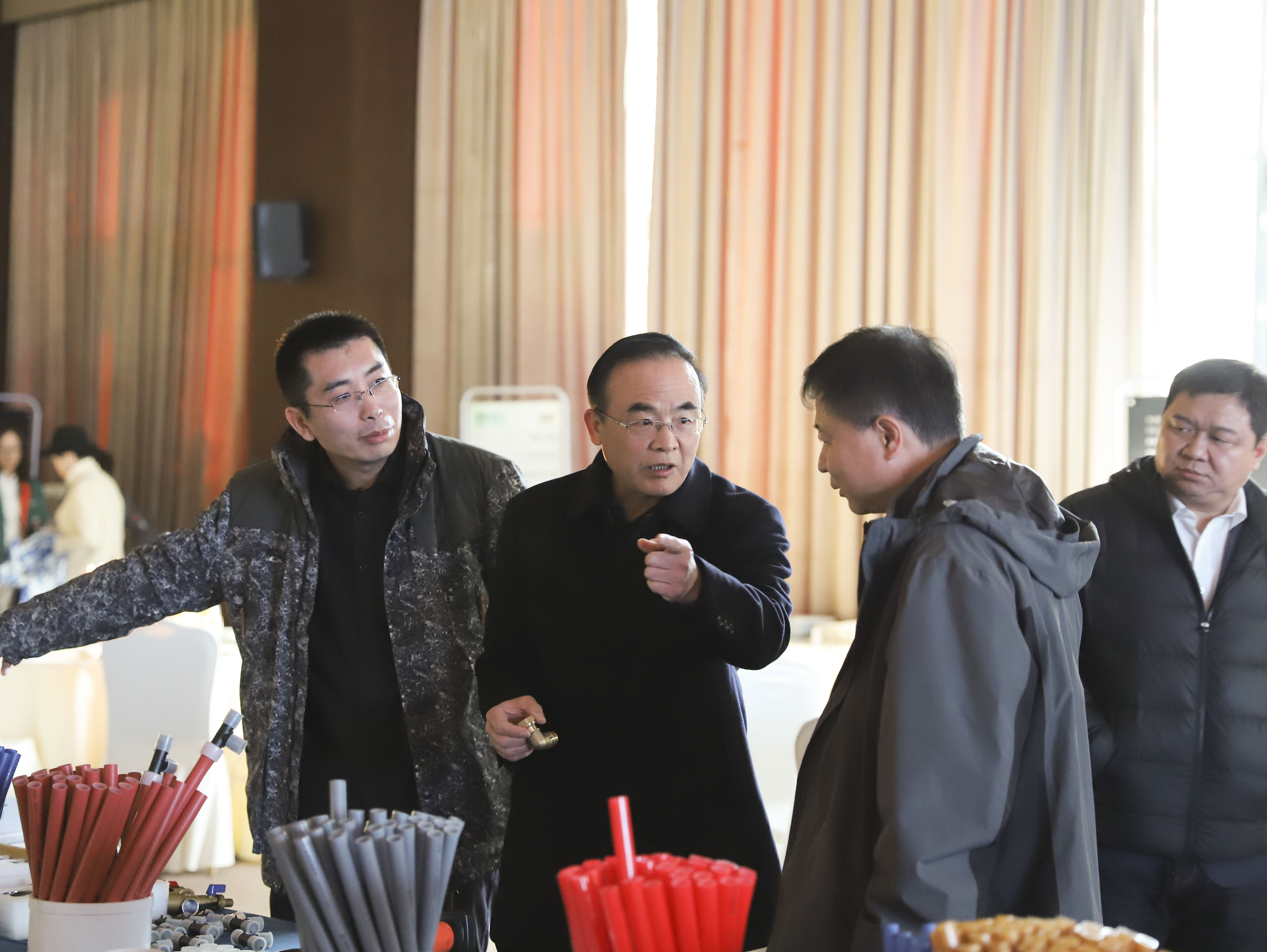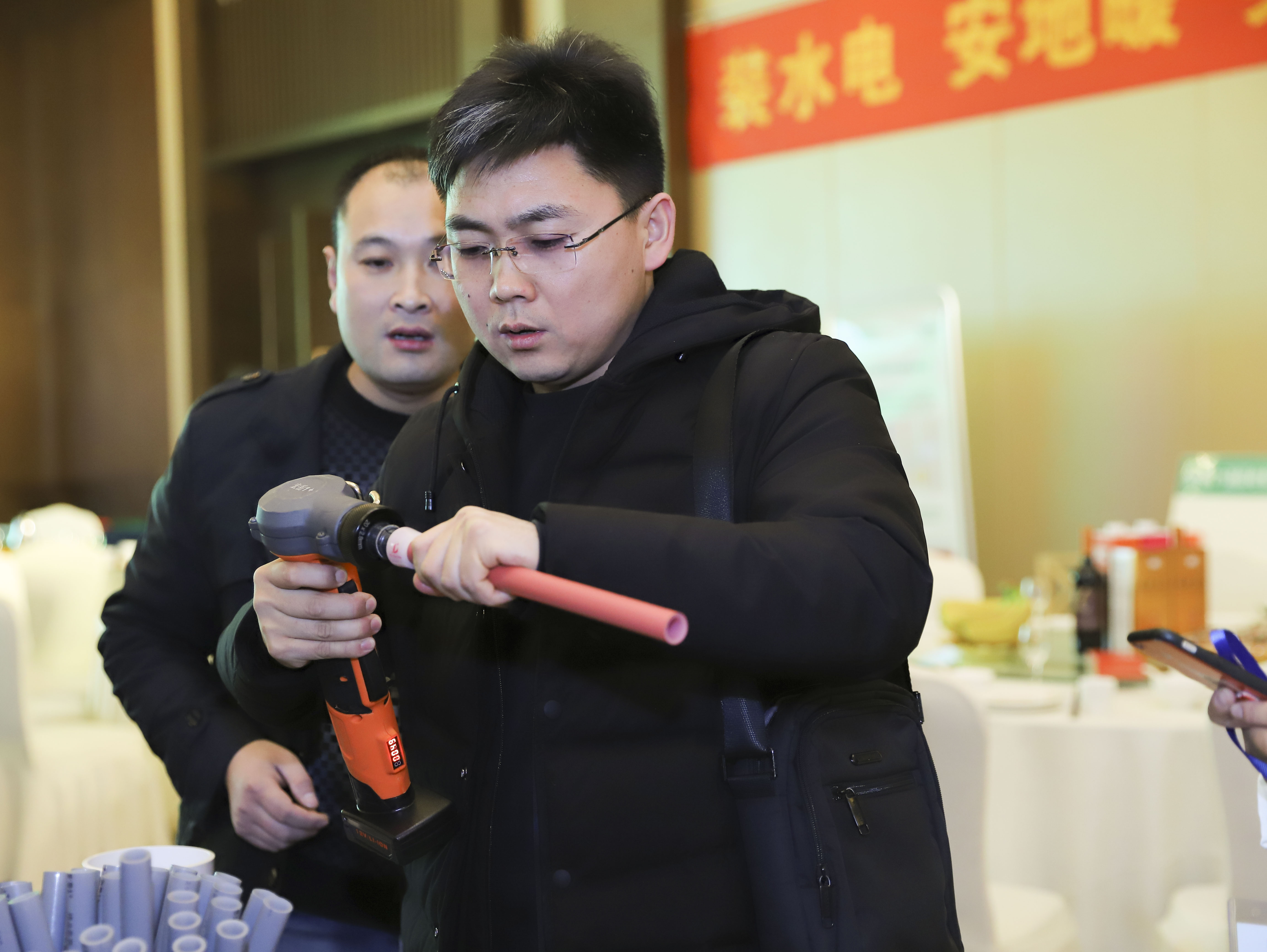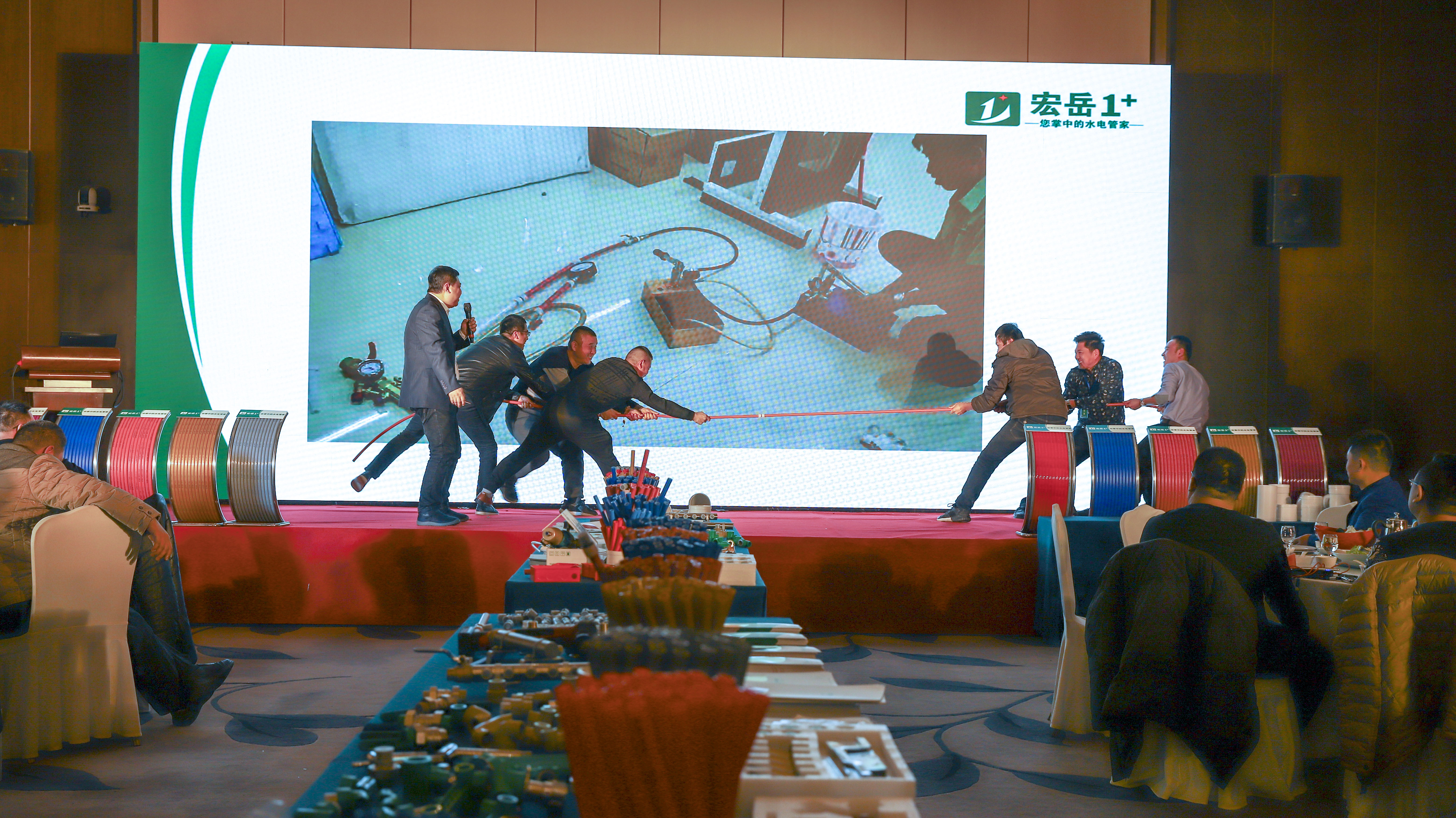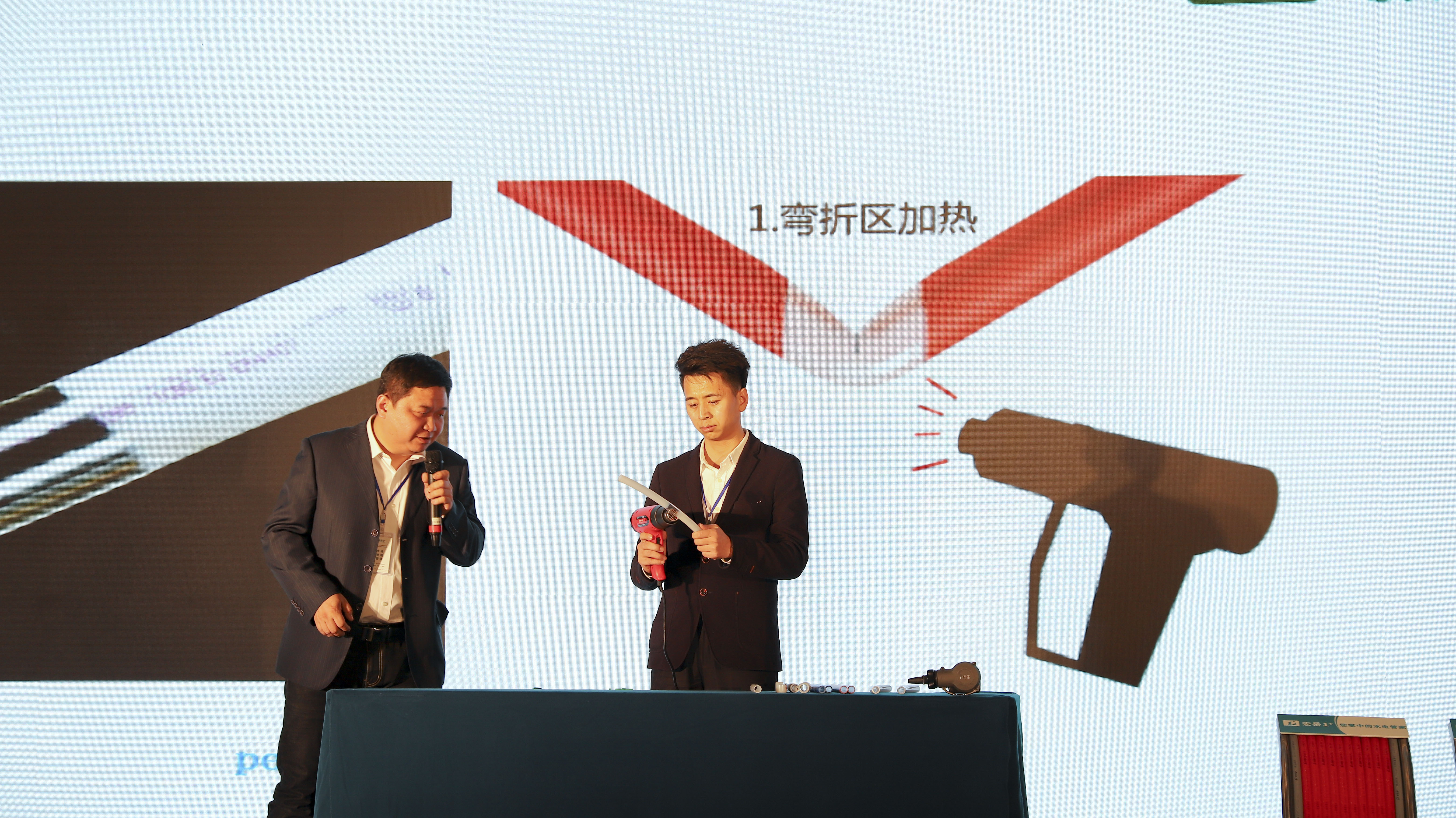 重点提出华体会hth1+PE-Xa给水系统较目前市场主流给水系统降低70%的风险点,耐压高67%,耐温高32%,会上通过现场实验,展现了PE-Xa给水管超强的记忆功能,应对变形折伤加热即可无损复原。