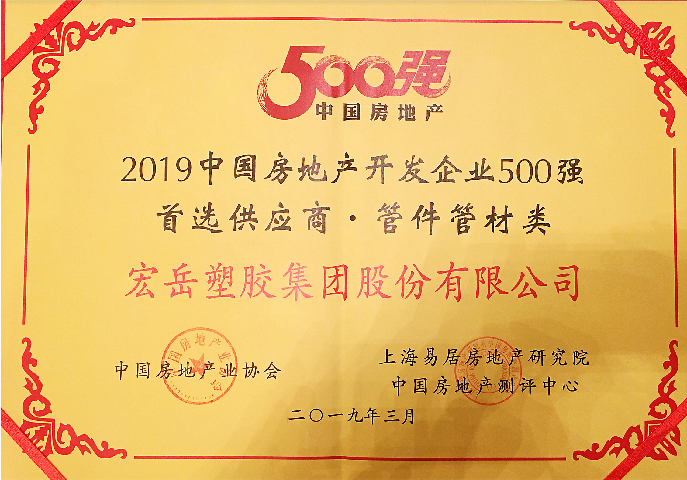 华体会hth集团连续6年获得“中国房地产开发企业500强首选供应商”。华体会hth深耕塑料管道行业,20几年如一日,坚守品质、不忘初心。