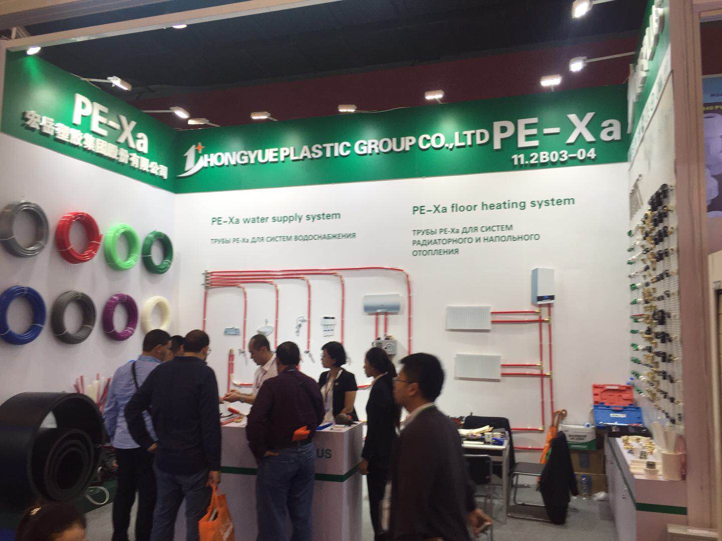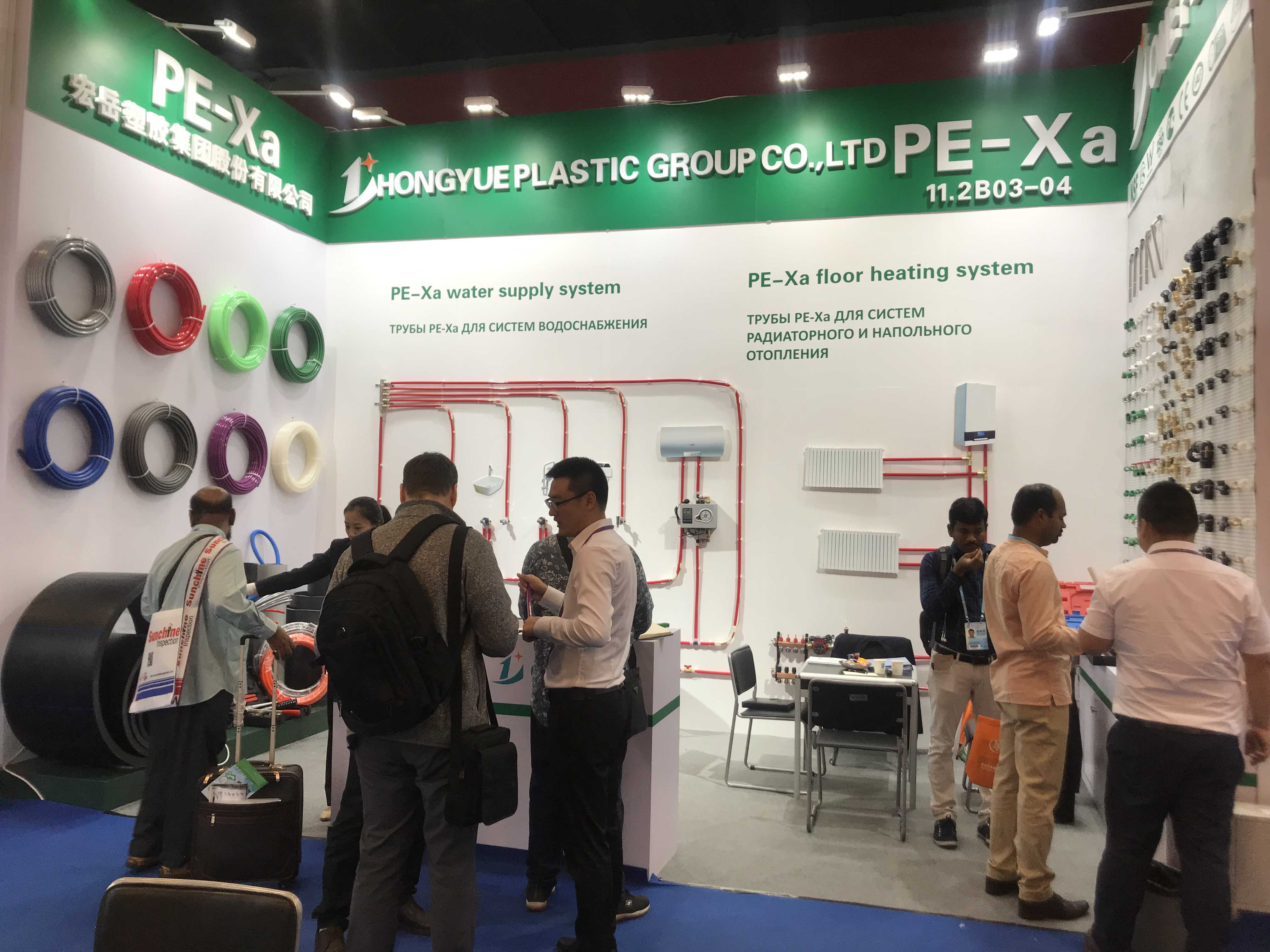 华体会hth展位前人潮攒动,络绎不绝,来自世界各国的采购商对华体会hth参展产品表现出了浓厚的兴趣,纷纷驻足了解华体会hth产品,最吸引各国客商目光的是PE-Xa给水系统。