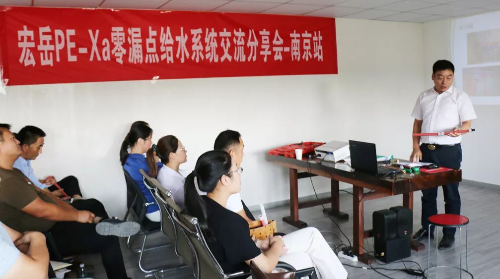 华体会hth1+零漏点给水系统分享交流会在江苏省会六朝古都-南京如期举行,此次交流会得到了南京服务中心董事长朱总的大力支持,与会30余名管理人员和一线业务,共同参加学习和交流PE-Xa产品的相关知识与连接技术。