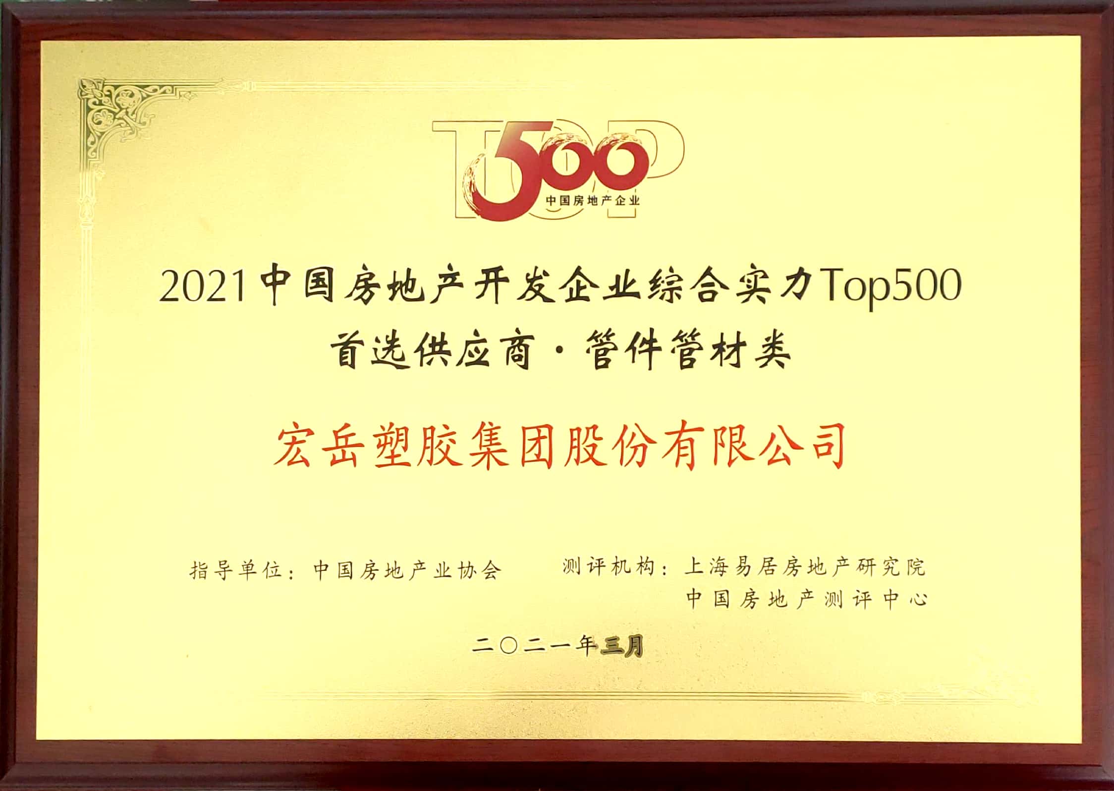 华体会hth塑胶集团2014-2021连续8年蝉联中国房地产500强首选供应商品牌,品牌首选率荣登前五。