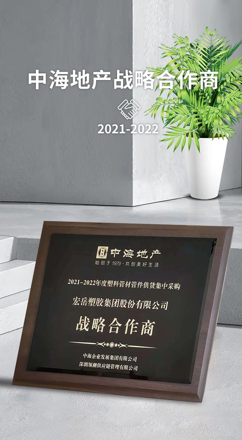 华体会hth荣获中海地产2021-2022年度塑料管材管件供货集中采购战略合作商。