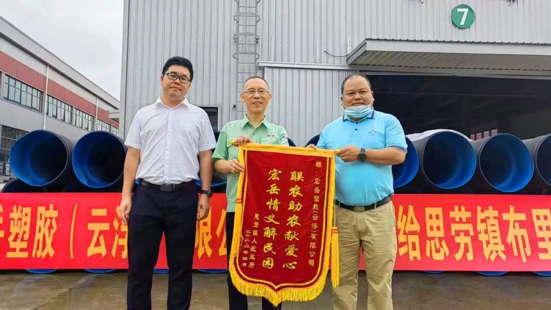 4月26日,华体会hth塑胶(云浮)公司向云浮市思劳镇布里村委捐赠PE双壁波纹管,及时高效地帮助该村解决了农田灌溉改造项目急需的管道材料。