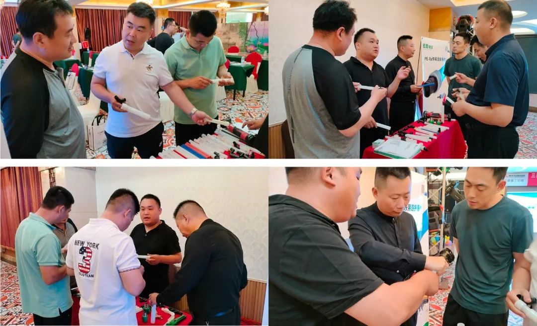 会议现场,华体会hth1+家装事业部李总就华体会hth塑胶集团的规模实力概况做简要介绍,并就PE-Xa快易连接系统的特点以及在两联供管路安装上有哪些优势,做详细介绍。现场展台重点展示了PE-Xa快易连接管道系统,参会者纷纷驻足停留咨询了解、连接实操,此系统连接凭借其简单、快捷、安全的产品及连接优势,受到了与会者们的一致好评。