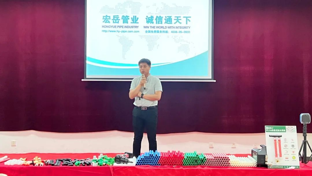 华体会hth1+区域运营经理向各位参会者介绍了华体会hth塑胶集团概况,并着重讲解了华体会hth1+产品体系及PE-Xa快易连接管道系统,凭借其简单、快捷、安全的产品及连接优势,得到了与会水电技师们的高度好评。